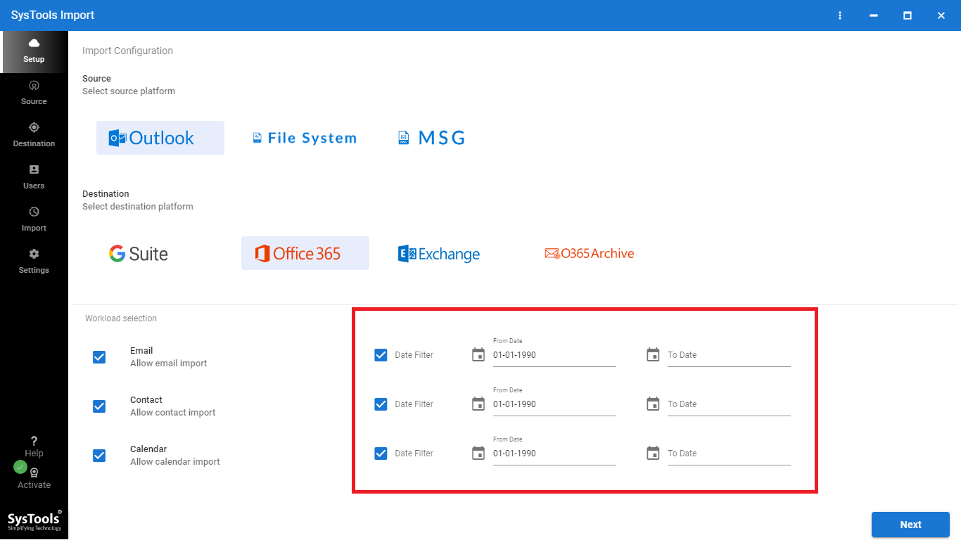 Once you’re ready, click "Start Import" to begin migrating the selected data to Office 365.